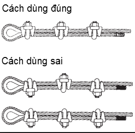 - Ốc siết cáp nên sử dụng ít nhất 2 con/ đầu để đảm bảo sự an toàn và hạn chế bị tuột sau thời gian ngắn sử dụng , khoảng cách của chúng bằng 6 lần đường kính của cáp